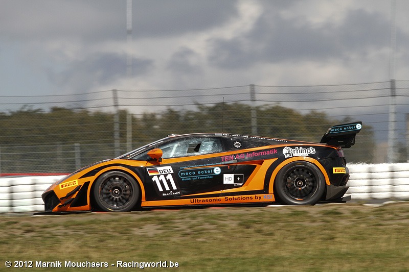 Het FIA GT3 kampioenschap werd in 2006 opgericht door Stéphane Ratel in een poging om amateur piloten, voor wie het GT1 kampioenschap te hoog gegrepen was, de mogelijkheid te geven om deel te nemen aan een professioneel GT kampioenschap. Low cost GT3 wagens moesten ook nieuwen merken aantrekken die dan later mogelijk hun aanwezigheid konden uitbreiden naar andere GT series. De formule kende onmiddellijk succes en het FIA GT3 kampioenschap haalde al snel startvelden die veel groter waren dan die van het hoger aangeschreven GT1 kampioenschap. De kosten gingen al snel de hoogte in en de komst van een endurance serie voor GT3 wagens die meer tracktime bood voor dezelfde waarde lokte al snel de meeste gentlemen drivers weg. Het ontbreken van gekende namen bij de rijders en de teams alsook het geringe aantal starters dit jaar betekende de doodsteek voor het kampioenschap dat volgend jaar niet langer zal plaats vinden. Met een mager startveld van 11 wagens verzonk het huidige kampioenschap naar de volledige anonimiteit. Dit jaar kwam de serie ook in Zolder in actie in het kader van het GT1 weekend. De twee laatste races van het kampioenschap werden dan tezamen met de GT1 wagens gereden daar beide series leden onder slinkende startvelden.Na de laatste race op de Nürburgring werden Dominik Baumann en Maximilian Buhk uitgeroepen tot de kampioenen van 2012. Het duo had voor het laatste weekend al vier races gewonnen en domineerde het GT3 veld zodanig dat de Heico Gravity Charouz Mercedes zich mengde in de strijd tussen de GT1’s. Baumann en Buhk wonnen de eerst race gemakkelijk en hadden een dusdanige voorsprong in het kampioenschap dat de titel hun niet meer kon ontglippen. De AF Corse Ferrari van Michael Lyons en Stefano Gai pakte de tweede plaats voor de tweede Heico Mercedes van Nilsson/Vahamaki.